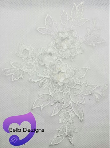 WHITE - Lace Applique Motif - 3D 3 Flower