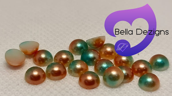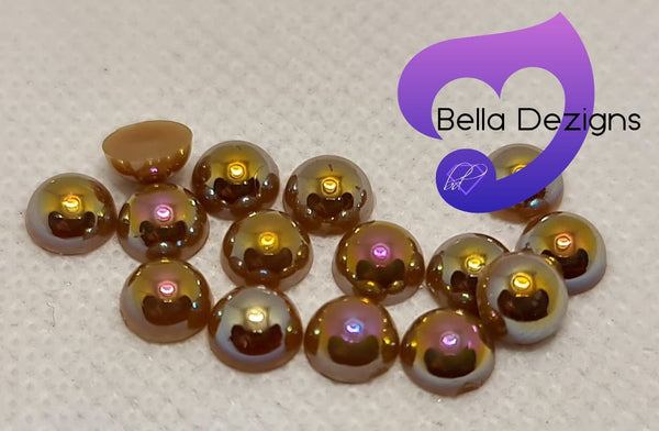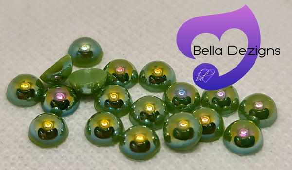 RAINBOW (COFFEE GREEN) - Acrylic Half Round Flatback Pearl (6mm) from $2.75