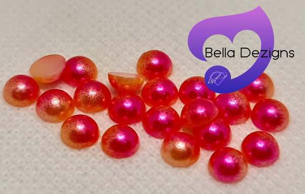 RAINBOW (FUCHSIA PEACH) - Acrylic Half Round Flatback Pearl (6mm) from $2.75