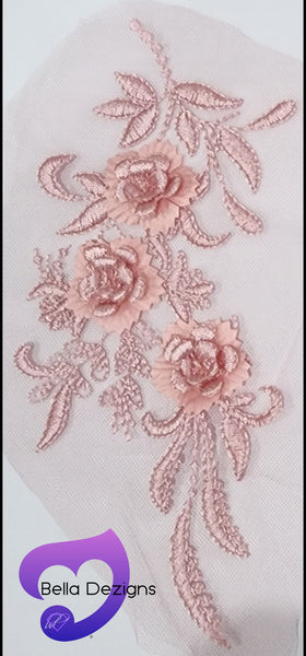 DUSTY PINK - Lace Applique Motif - 3D 3 Flower Feather Tail $3.50