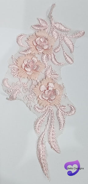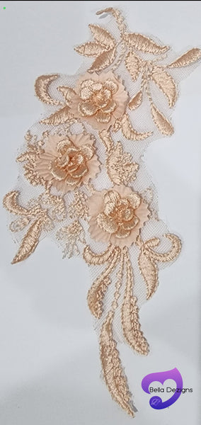 PEACH - Lace Applique Motif - 3D 3 Flower Feather Tail $3.50