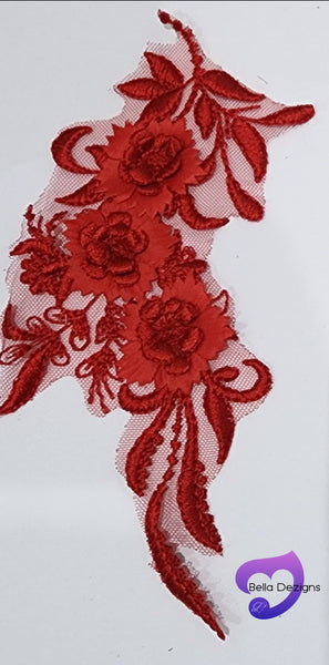 RED - Lace Applique Motif - 3D 3 Flower Feather Tail $3.50