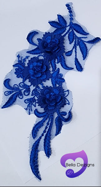 ROYAL BLUE - Lace Applique Motif - 3D 3 Flower Feather Tail $3.50