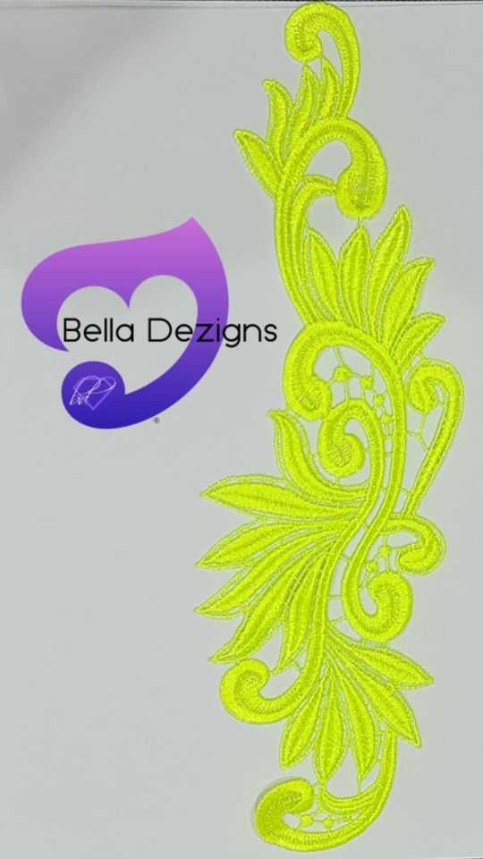 FLUORO YELLOW - Lace Applique Motif - Venise Lace (Leaves)