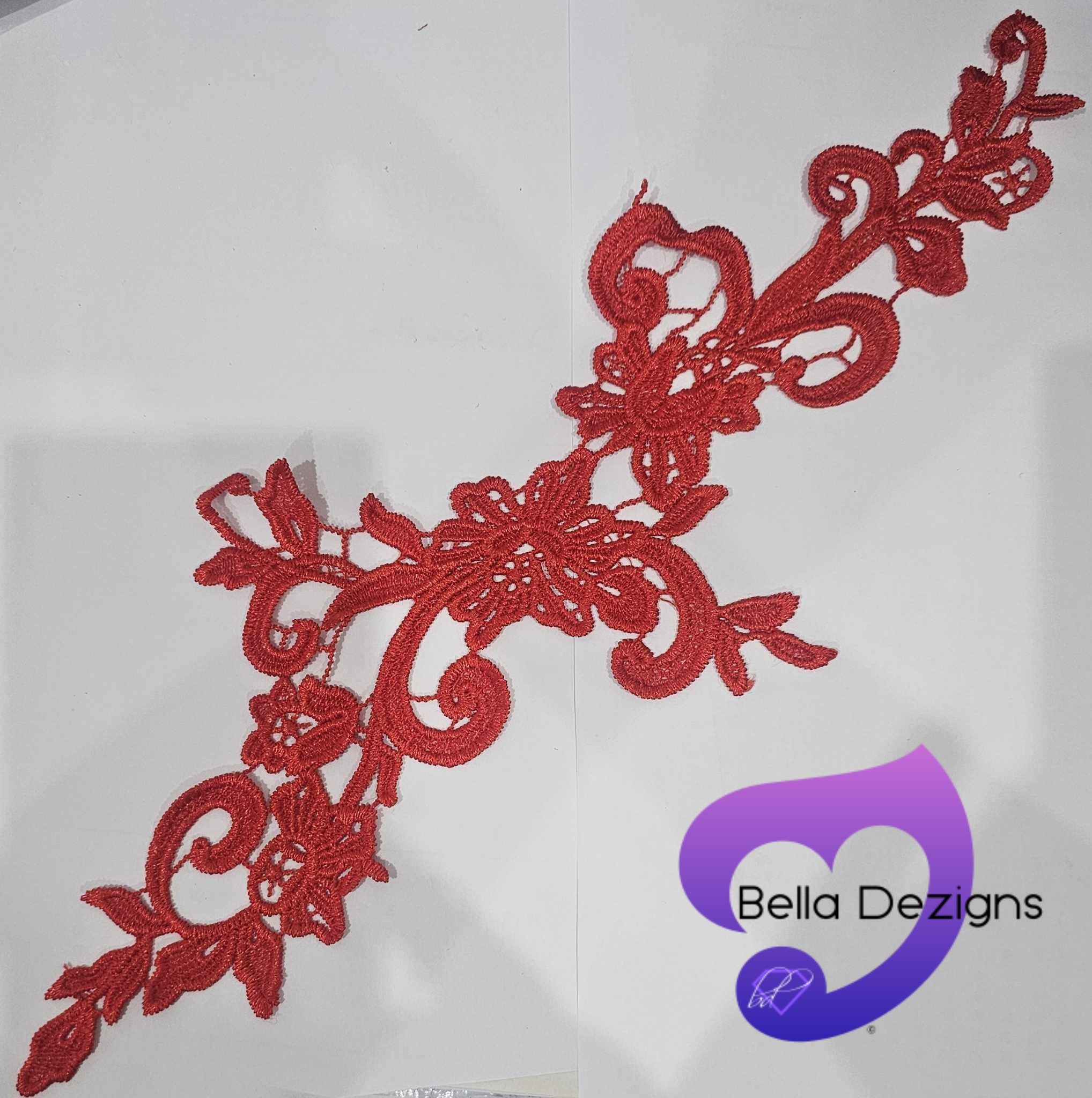 RED - Lace Applique Motif - Venise Lace (Sizeable)