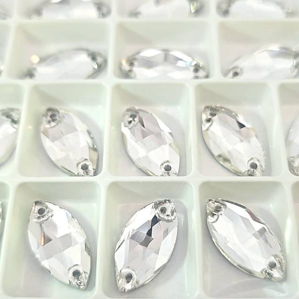 CRYSTAL CLEAR (HORSE EYE NAVETTE) 9mm x 18mm - Non Hotfix Flatback Crystal Rhinestones Out of stock