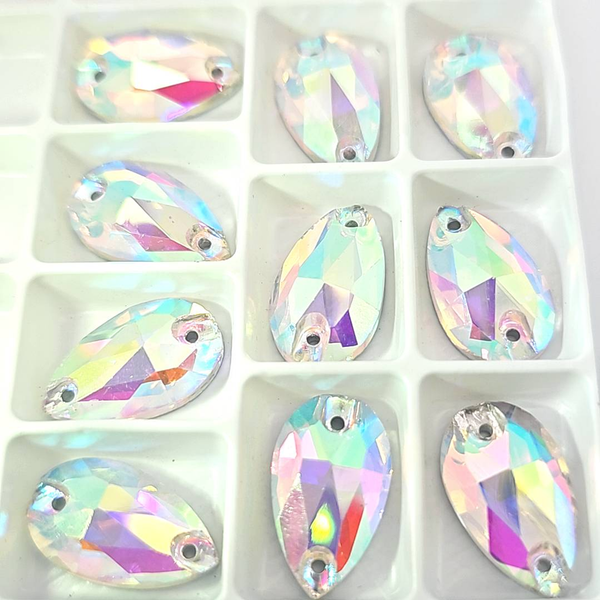 CRYSTAL CLEAR AB (TEAR DROP) 11mm x 18mm - Non Hotfix Flatback Crystal Rhinestones Out of stock