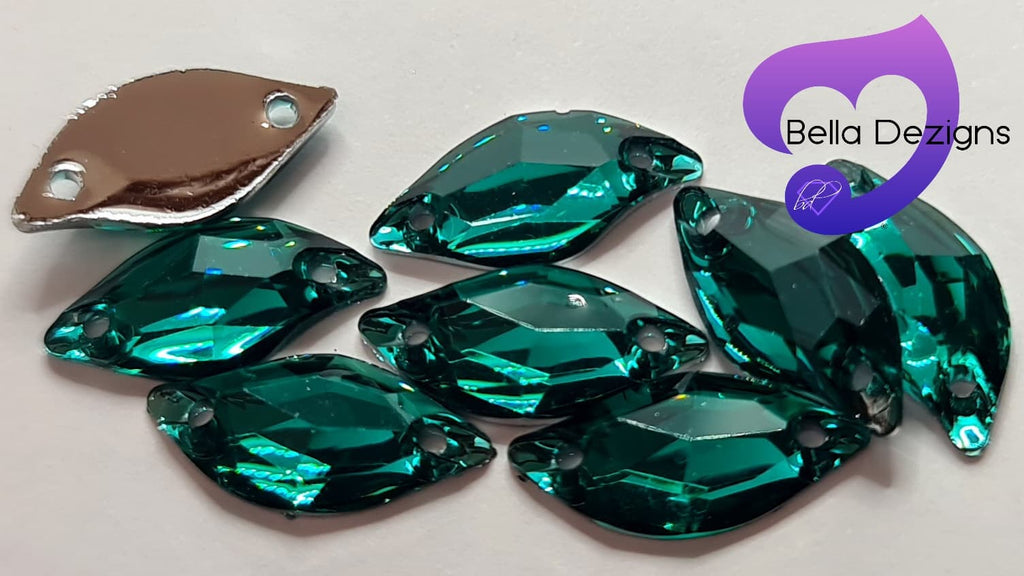 BLUE ZIRCON - 20x9mm Resin Leaf Shape Flatback Rhinestone