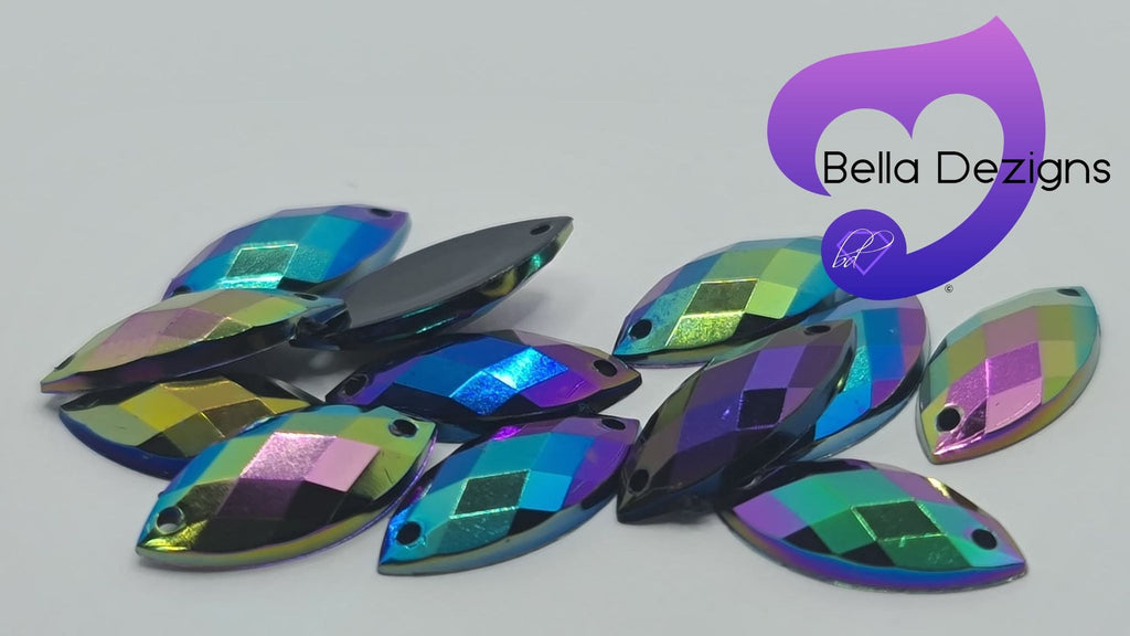 JET BLACK AB - 15x7mm Acrylic Horse Eye Flatback Rhinestone