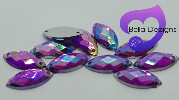 VIOLET AB - 15x7mm Acrylic Horse Eye Flatback Rhinestone from $5.50