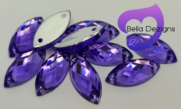 VIOLET - 15x7mm Acrylic Horse Eye Flatback Rhinestone from $5.50