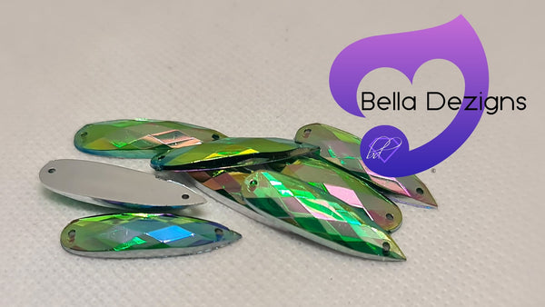 LIGHT PERIDOT AB - 28x8mm Acrylic Tear Drop Flatback Rhinestone from $5.00