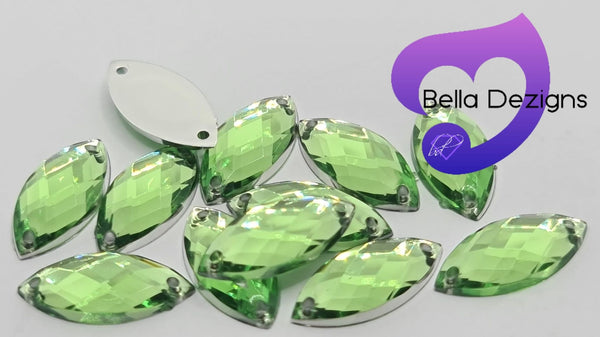 LIGHT PERIDOT - 15x7mm Acrylic Horse Eye Flatback Rhinestone from $5.50
