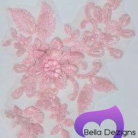 LIGHT PINK - Lace Applique Motif - 3D Sequined 1 Flower